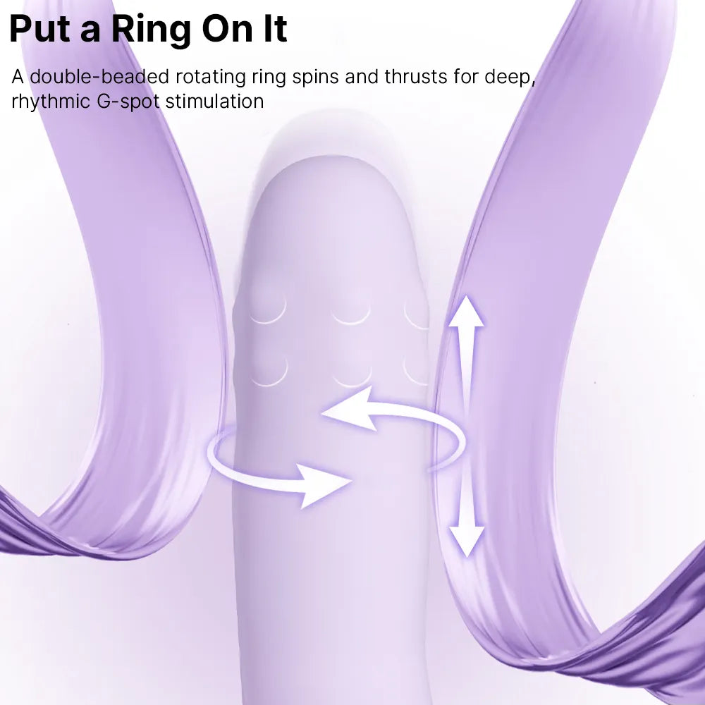 At the tip of the vibe, a thrusting ring moves at 85 thrusts per minute while twisty beads spin at 270 rotations per minute. The result? A layered, rolling rhythm that feels unbelievably good.