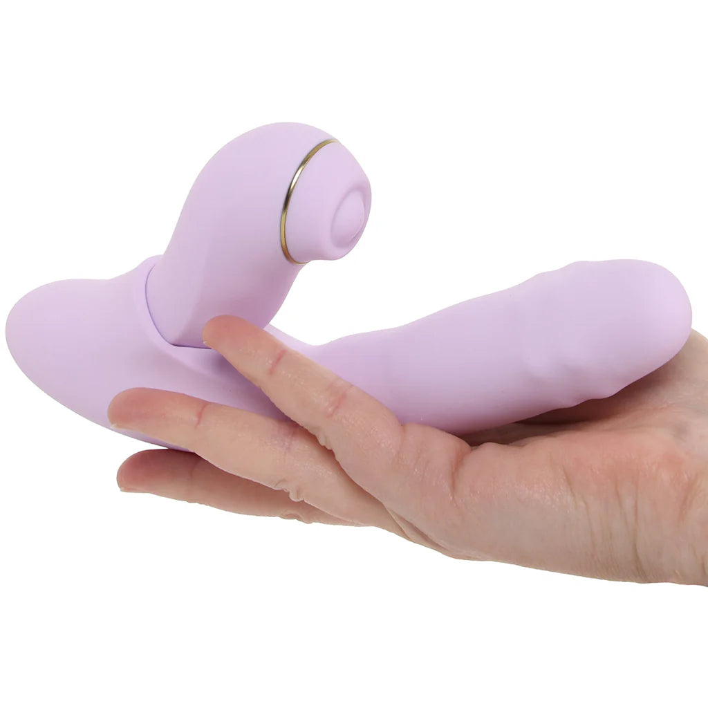 This two-part powerhouse gives you a thrusting, beaded vibrator and a detachable pulsing stimulator you can use together or solo. Fit the curvy little teaser into a pocket on the vibe to build a beloved double-pleasure rabbit shape, or keep it separate. Your call.