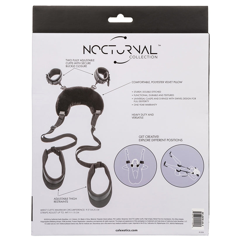 The Nocturnal Collection Position Strap with Pillow includes 2 fully adjustable cuffs with secure buckle closures, allowing for a customized fit that enhances your play. Adjustable thigh restraints and universal clasps with D-rings and a swivel design provide full dexterity and ease of movement, enabling you to explore a variety of positions effortlessly.