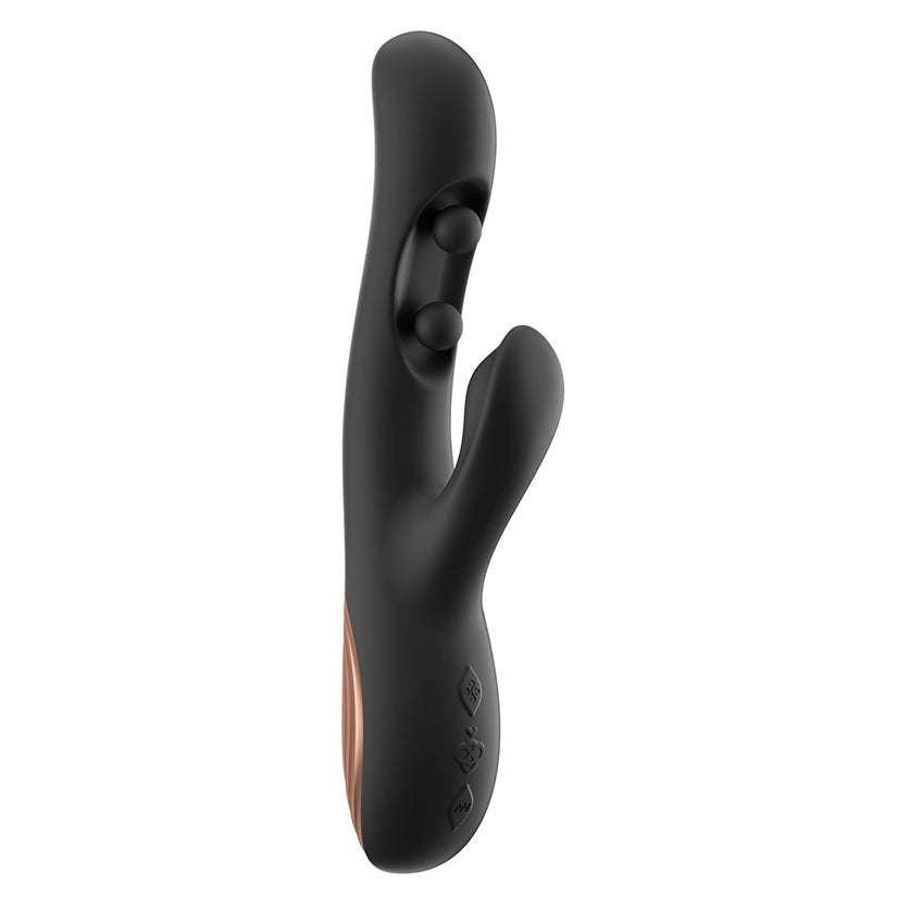 NEGRO. Innovador movimiento de doble bola, diseñado para brindar estimulación rítmica y localizada para una comodidad personalizada. Diseñado para estimular la mayoría de tus zonas a la vez. 9 modos para mayor variedad: múltiples configuraciones ajustables que te permiten explorar diferentes ritmos para adaptarlos a tus preferencias.