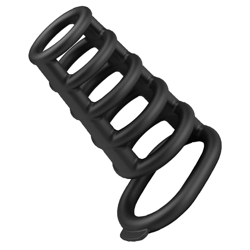 Get an optimal stimulation during couple's play with this 6 Connected-Ring Ribbed Penis Extender Sleeve. This flexible and stretchy sheath slips on easily with a splash of water-based lube, secured by a stabilising strap that is anchored beneath your scrotum, to subtly extend and thicken your feelings. Comfort is key with this clever cock sleeve. Made from best quality silicone, the Ribbed Connected-Ring texture of this silken shaft caresses your playmate’s sweet spots for incredible stimulation with every thrust. Ideal for vaginal play, this extender sleeve is just the ticket for longer-lasting lovemaking. So, treat your partner to an extra stimulation with this Penis Extender Sleeve for mind-blowing orgasms.