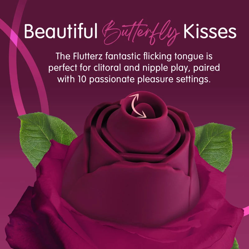 Fall in love with the Skins Rose Buddies The Rose Flutterz Rechargeable Silicone Flicking Stimulator as it guides you to a beautiful climax, designed to deliver intense pleasure and impress even the most discerning users. This crimson delight offers a delightful flicking movement, providing an enjoyable and stimulating clitoral experience that's perfect for solo play. Despite its discreet size, this latest addition to the Skins Rose Buddies collection boasts powerful vibrations, ensuring satisfaction every time. Compact yet charming, the Rose Flutterz features a soft silicone body that's gentle to the touch, making it a pleasure to use. With ten different pleasure settings, you can customize your experience to suit your desires, whether you prefer a pulsing motion, increased speed, or a slower, more sensual journey. Fully water-resistant, this rose vibrator is ideal for play in the bath or shower, adding excitement to your self-love routine. Plus, equipped with a speedy USB charger, you'll never have to interrupt your pleasure, ensuring seamless satisfaction whenever you need it.
