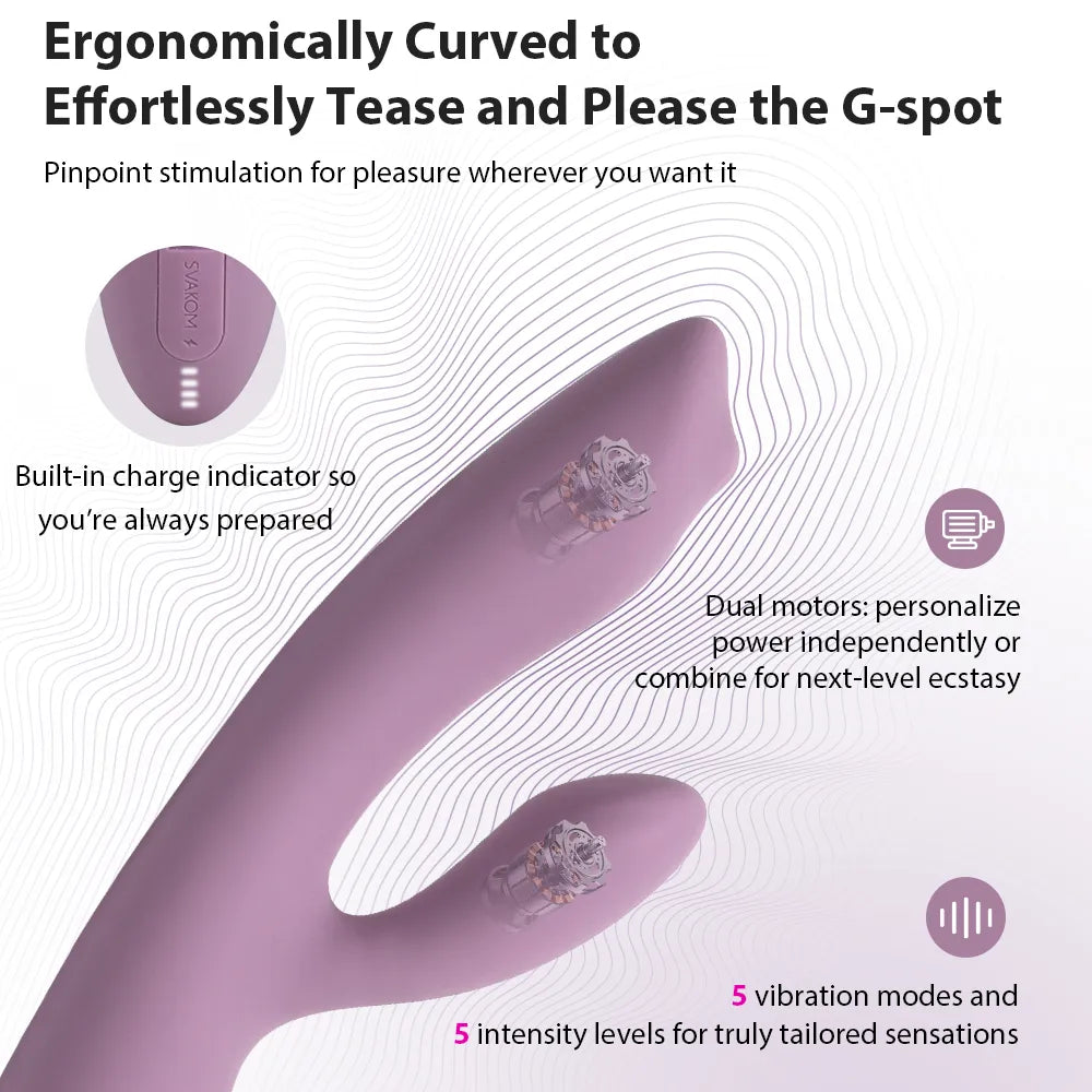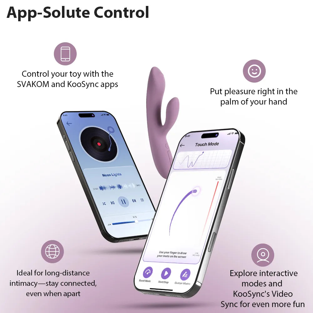 Trysta Neo intensifies G-spot pleasure with a firmer ball that rolls up and down the head of its semi-rigid shaft. There’s also an independent clitoral stimulator to encourage blended orgasms with tempting vibrations. As part of SVAKOM’s Connexion Series, Trysta Neo lets you ‘feel’ interactive adult videos or perform on cam sites. You can also use Trysta Neo with the SVAKOM App on a Bluetooth-enabled smartphone to enjoy customization, long-distance control and partner play.